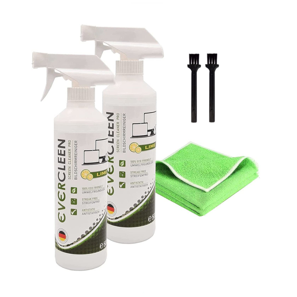 EVERCLEEN Screen Cleaner Pro 2x Bildschirmreiniger 500ml + 2x Mikrofasertuch + 2x Bürste
